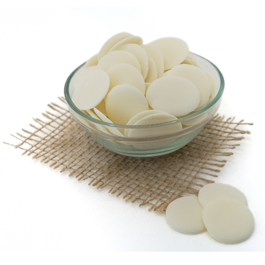 Bănuți de ciocolată albă care se topesc uniform și se dozează ușor. Ideali pentru glazuri, creme, ganache, drip cakes, mousse, trufe, fursecuri și decor. Forma „bănuți” asigură topire rapidă, luciu frumos după temperare și rezultate constante.