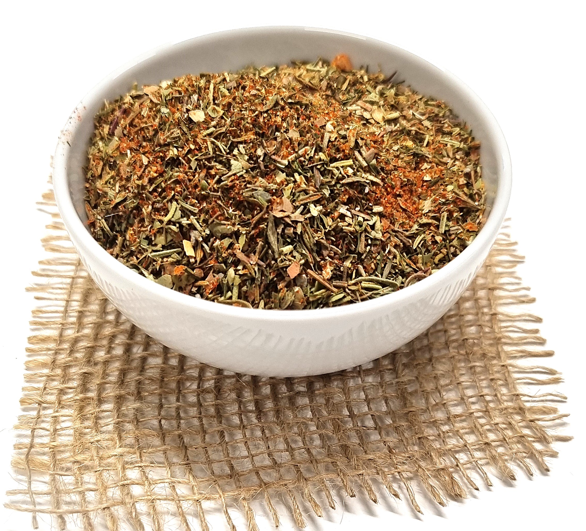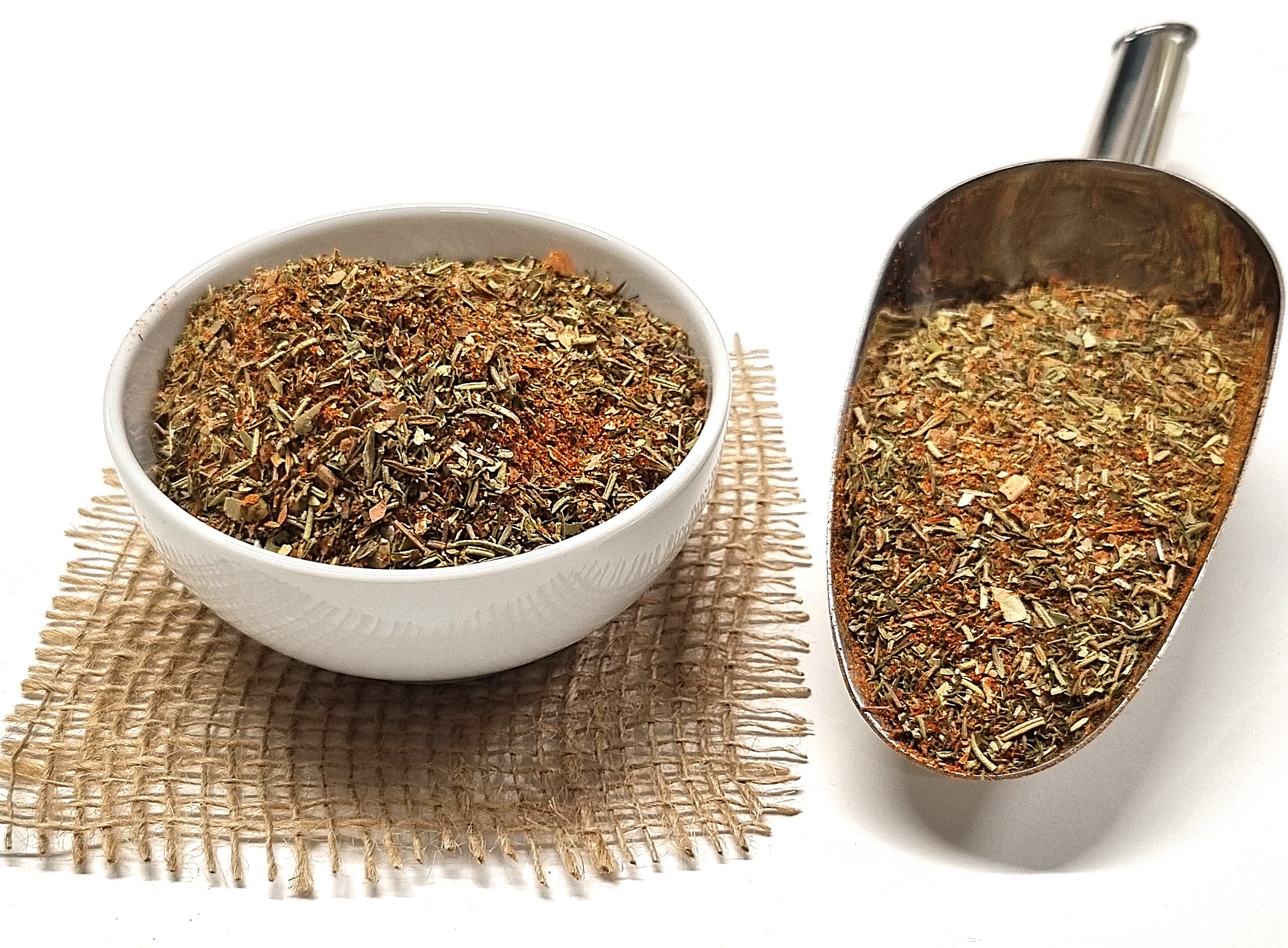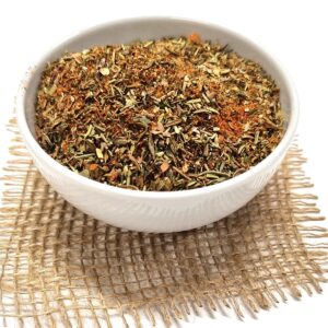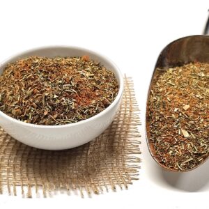 Combinația de oregano, rozmarin și cimbru aduce note mediteraneene ușor aromate, completate de usturoiul intens și boiaua dulce care oferă culoare și profunzime gustului. Piperul negru, coriandrul și ardeiul iute adaugă un strop de picant, iar mărarul și sarea neiodată rotunjesc perfect aroma naturală a cărnii.