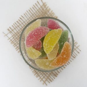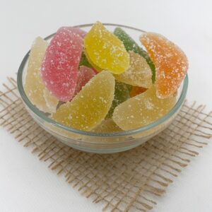 Jeleurile Livada cu Fructe sunt dulciuri gumate, colorate și aromate, inspirate din gustul fructelor preferate. Cu o textură elastică și plăcută la mestecat, aceste jeleuri oferă o experiență dulce și fructată, potrivită atât pentru copii, cât și pentru adulți. Aromele variate – precum portocală, căpșuni, caise, piersici, mere sau ananas – transformă fiecare bucată într-un moment de răsfăț. Gustul echilibrat, dulce și fructat, le face ideale pentru momentele în care îți dorești ceva savuros și energizant.