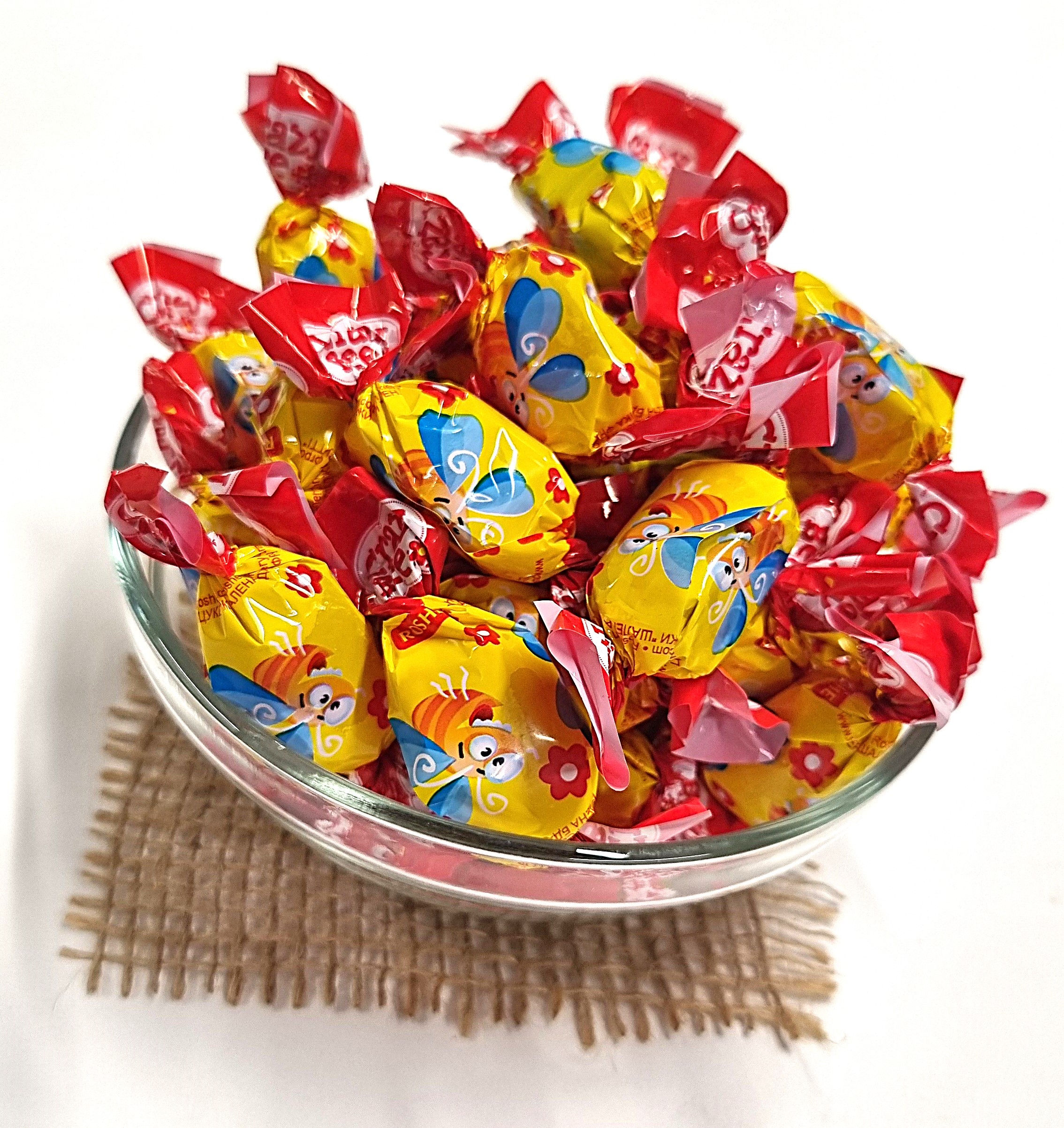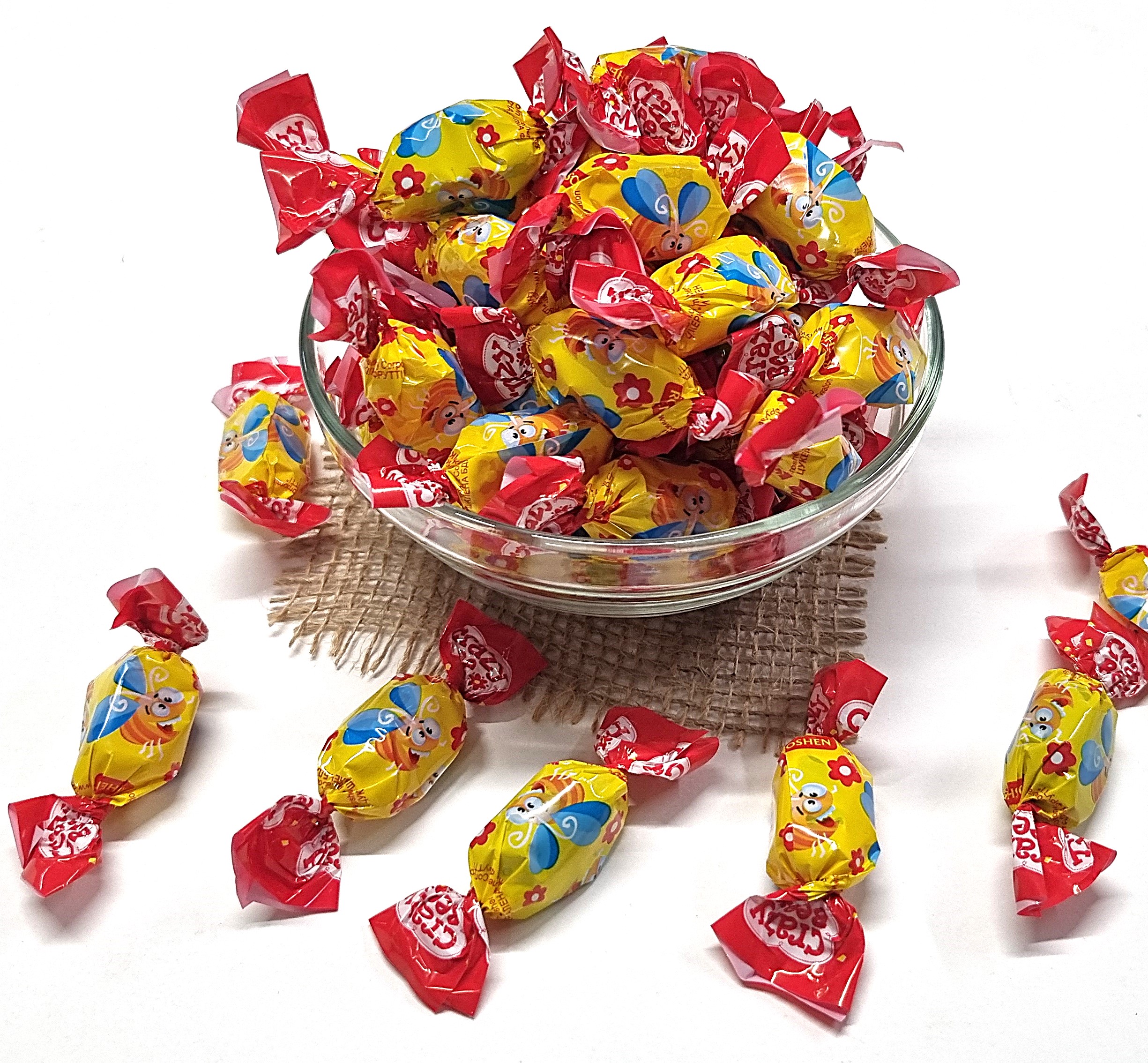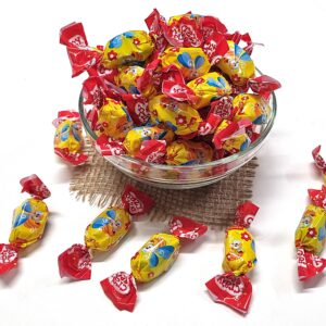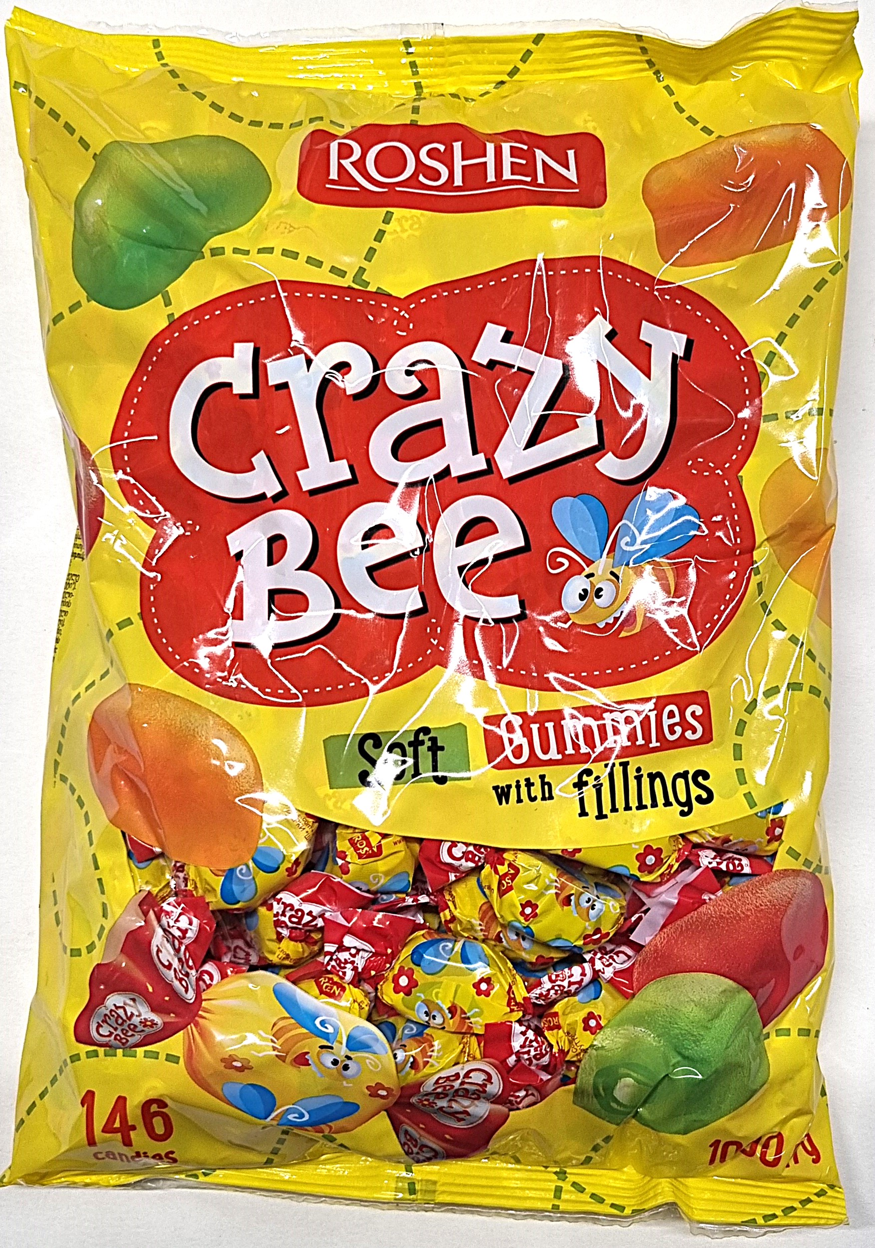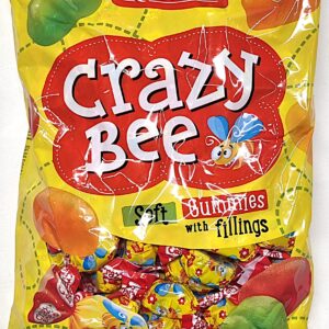 Descoperă bomboanele gumate Crazy Bee de la Roshen, un mix delicios de jeleuri cu umplutură aromată de fructe, într-un ambalaj vesel cu albine. Aceste jeleuri au o textură fină și moale, cu gust intens de fructe precum portocale, grapefruit, visine, fructe de pădure, lămâie, lime și căpșuni, ideale pentru momente dulci de răsfăț sau pentru a-i bucura pe cei mici.