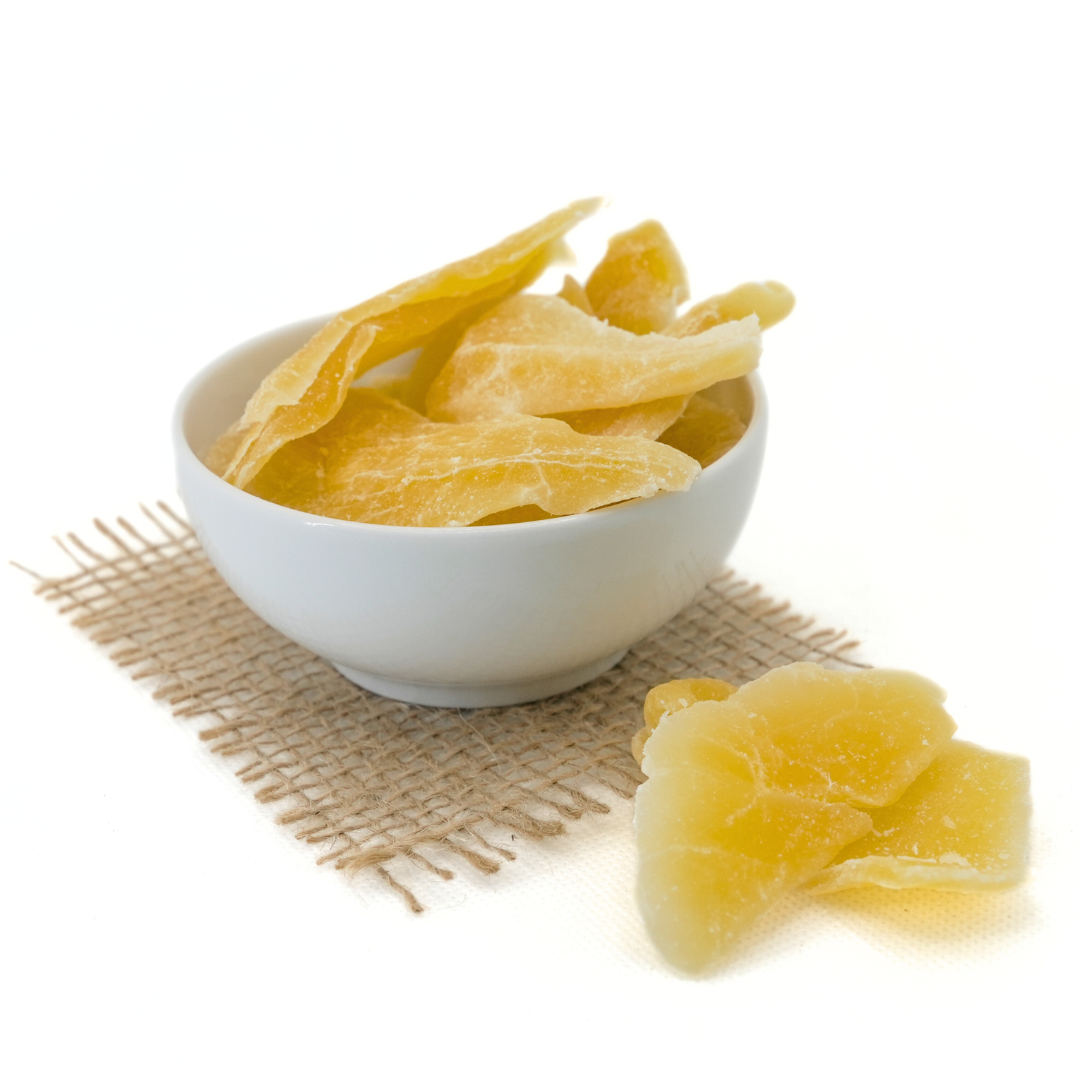 Mango confiat este apreciat și pentru beneficiile sale nutriționale, deoarece mango-ul este o sursă bogată de vitamine, minerale și antioxidanți, care pot susține sănătatea sistemului imunitar și a pielii.