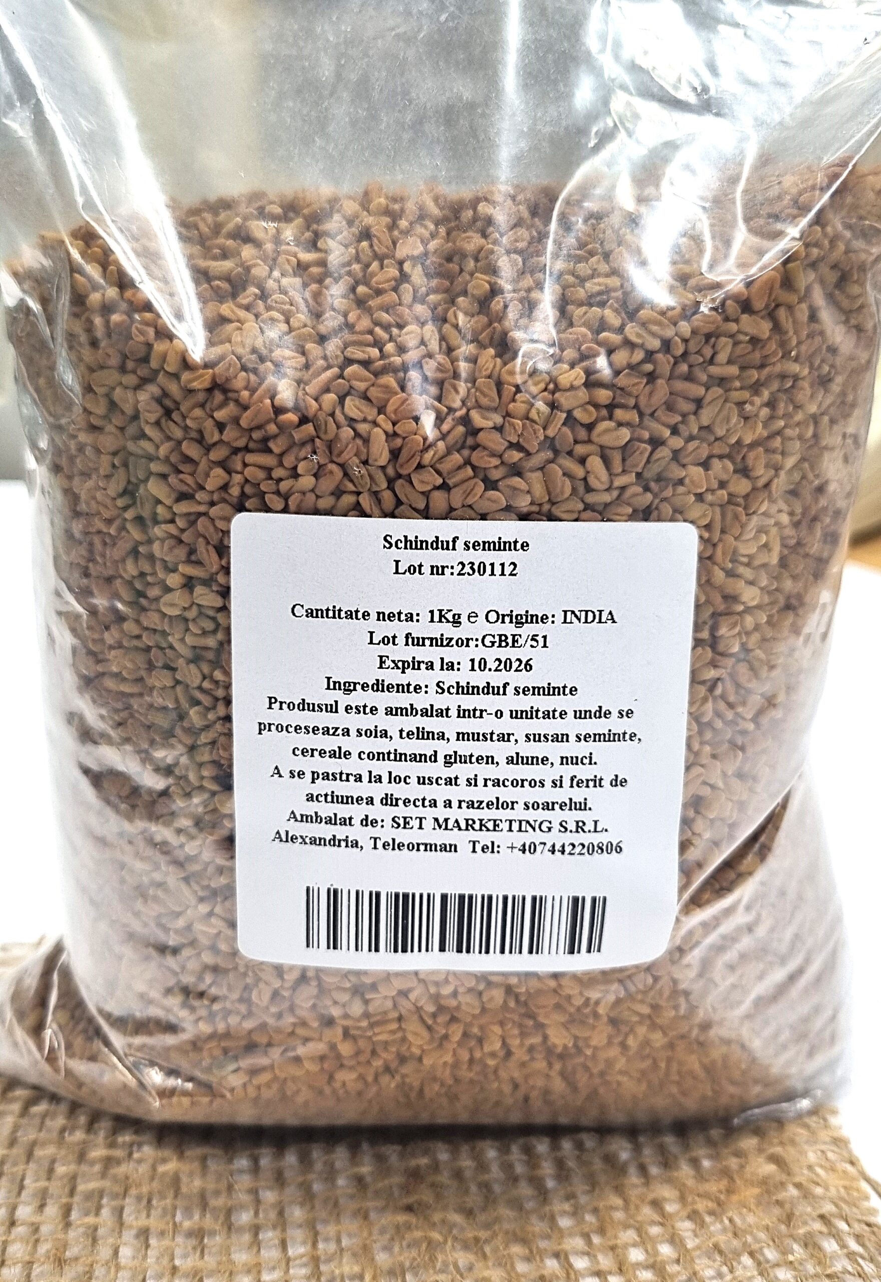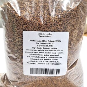 Semințele de schinduf sunt semințe mici, de culoare galben-aurie, cunoscute pentru aroma lor intensă și gustul ușor amărui. Provenite din India, acestea sunt utilizate frecvent în bucătăriile asiatice și orientale. Datorită profilului aromatic distinct, schinduful este folosit atât ca atare, cât și măcinat, în diverse amestecuri de condimente. Este un ingredient tradițional apreciat pentru capacitatea sa de a intensifica savoarea preparatelor.